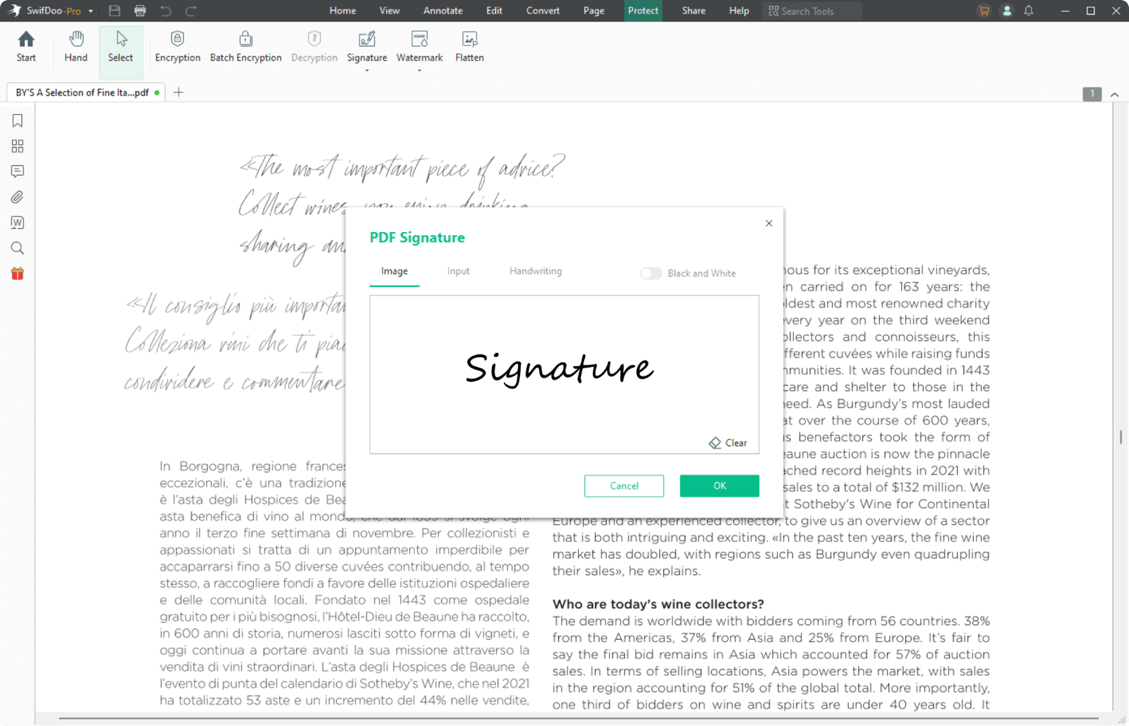 Creëer een juridisch bindende elektronische handtekening door met de hand te schrijven, tekst in te voeren en afbeeldingen toe te voegen;